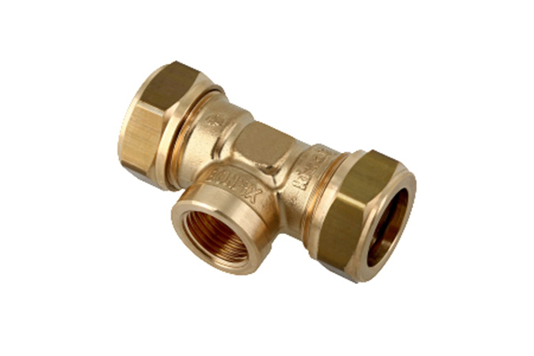 T-stuk koppeling 3x, knel x binnendraad x knel, messing, in aansluitmaat: 15×1/2″x15mm