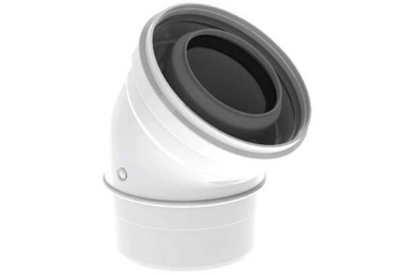 Burgerhout TwinSafe rookgasbocht 80/125 mm concentrisch PP wit in bochthoek: 45°